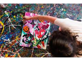1 hour splatter session accommodates 2 painters and includes protective gear, 16x20 canvases, access to the studio's tools and paints and boxes to take the paintings home in.