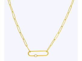 114k Yellow Gold paperclip diamond necklace with a length of 20.5", Link length 9.70mm, Link width 2.50mm, Total diamond weight 0.05. Item available for viewing/try on at Highland Diamond.