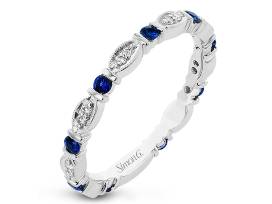 1Vintage-inspired Diamond and Sapphire band with a diamond weight of 0.09 and a sapphire weight of 0.30. Item available for viewing/try on at Highland Diamond.