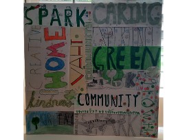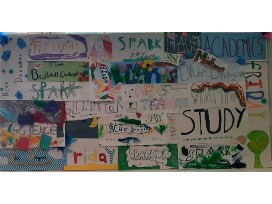 The 5th grade students of Ms. Talbert and Ms. Correa have commemorated some of their fond SPARK memories in a mixed media collage. They let their creativity speak for them as they each decorated and layered large slips of paper. One look at these 2 pieces and you'll see what SPARK means to these students! A special place for sure.