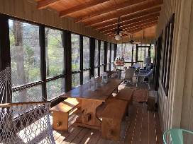 Cozy on water lake cottage with private dock on the property. The house has been recently renovated and has a large screened-in porch with plenty of games and activities for the family - including a kids bunk room, outdoor fire pit, basketball/pickleball court, ping pong table, and satellite TV. Very private area on the lake.