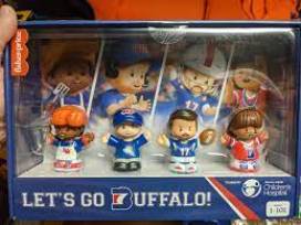 A perfect stocking stuffer for the Buffalo Bills fan in your life! The limited edition set includes four Fisher-Price Little People figures, including quarterback Josh Allen, coach Sean McDermott, and two fans that represent the "Bills Mafia" wearing authentic Bills apparel.