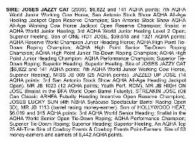 The One Hot Jose line is no stranger to the roping pen. Both Quinn Kesler and Kory Koontz have made the NFR on One Hot Jose horses! Joses Jazzy Cat has 141 AQHA points accumulated in working cow horse, heeling, heading and tie down roping.