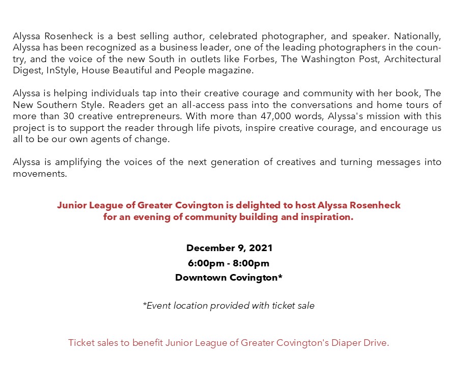 I am not purchasing tickets, but would like to register to support Junior League of Greater Covington!