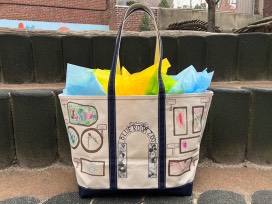 A true BHNS tradition! This beautiful, personalized Blue Room Class tote bag is a treasure. You can carry the memories of BHNS wherever you go! Bids from Blue Room families only.