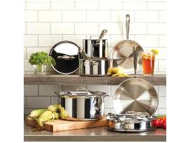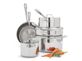 All-Clad puts the same enthusiasm and creativity into their cookware that chefs and home cooks alike put into every dish they make. This package will outfit your kitchen with the essentials: 2 skillets, 2 saucepans with lids, 1 stockpot with lid, and 1 sauté pan with lid.