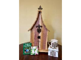 Along with your beautiful, hand-made birdhouse, enjoy a "Birds of Connecticut" field guide, an adorable birdhouse mug and a decorative, hummingbird themed box of matches.