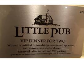 VIP dinner for two including 2 drinks, one shared appetizer, 2 entrees and one shared dessert. ($100)