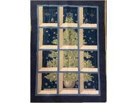 Hand made christmas quilt wall hanging or small throw blanket in beautiful blues, greens and red.