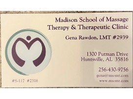 Good for a one-hour massage with Gena Rawdon, owner, Madison School of Massage Therapy and Therapeutic Clinic
