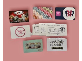 Gift cards to 7 sweet vendors: Big Foot's Little Donuts ($21), L'Etoile Patisserie ($25), Edgar's ($25), Baby Bites ($25), Cookie Fix ($25), Baskin Robbins Ice Cream ($10), and Bruster's Ice Cream ($10).