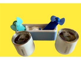 Highly sought after for that trip to the beach - Blue Bogg bag with nautical motif. This set includes 2 Corksicle cup, 2 Beach towels and 2 O2Cool Beach fans and a Bogg zipper pouch.