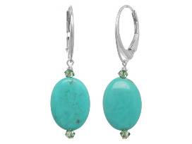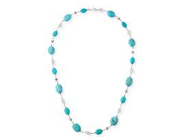 From New York designer Margo Morrison, this exquisite 35" turquoise, blue topaz, silverite and Swarovski crystal necklace with matching earrings will bring a pop of color to any outfit. Handmade in New York.