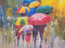 Colorful umbrellas walking in the rain scarf & Labradorite moon shaped necklace 14K GF.