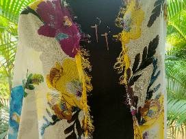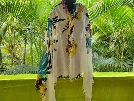 Hand painted linen cream floral scarf & Wana 14K gold-filled earrings