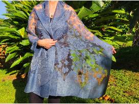 Blue sheer scarf with 14K GF Baroque Tahitian Pearl necklace