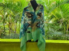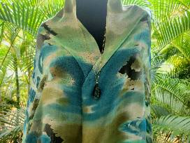 Turquoise, green and aqua sheer scarf with 14K gold filled Labradorite necklace.