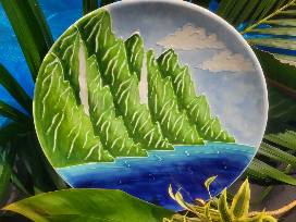 Banana Patch pottery features original designs by Kaua'i artist Joanna Carolan. Each piece is hand painted, using lead free glazes and fired in solar-powered kilns.