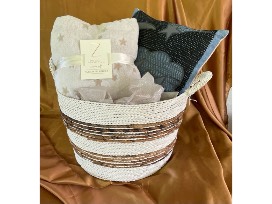 To start your home refresh enjoy a cozy Z Lounge plush blanket and a Lucky Fish fun moon and stars linen throw pillow from local boutique Oskars Boutique!