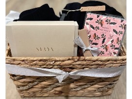 Get cozy in your Kim Kardashian created Skims long black pajama set (Size M), KKW lip gloss, Celebrity favorite Surya spa set and Manoa dark chocolate bar with Punky Aloha illustration.