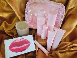 Kylie Jenners 6 piece top selling skincare set with travel bag, KKW perfume created for Kylie Jenner and KKW Vanilla Cream scented candle.
