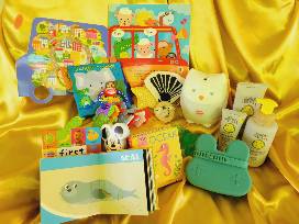 Bundle of baby to toddler necessities includes Haba balls mobile, a Moonlight and melodies nightlight soother owl, Baby Bum shampoo, lotion and balm, teething rings, silicone travel snack holder and books to keep your toddler busy. For the toddler on the go the Haba walk along dolly will keep them moving.