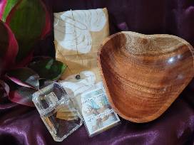 Whether you're celebrating a birthday, anniversary or even Mother's Day she will feel spoiled with a European facial, 14K GF Tahitian pearl necklace, KKW fragrance Diamonds, cotton anthuriums print pareo and the heart shaped Koa wood bowl,.