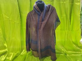 Brown and blue scarf with Labradorite dangle earrings.