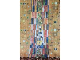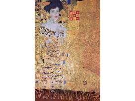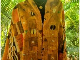 Reversible scarf abstract on one side and Adele Block Bauer on the other side with 14K gold filled sunrise shell London blue topper.