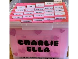 1One personalized children's school work/memory bow with 25 labeled file folders (Value $80)