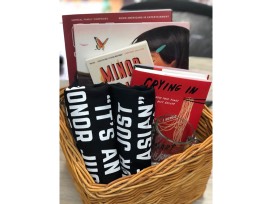 Dive into wonderful books and enjoy fun swag from esteemed Asian American Artists (like Sandra Oh!) with this unique basket.