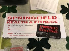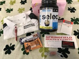 Get rid of the Covid 20! Start your workout program today at Springfield Health & Fitness with a 6-month membership, protein powder, and 2 protein bars. Also included is a SHF polo shirt, magnetic note pads and hand sanitizer.