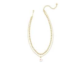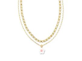 There's no better way to freshen up your layered look than with the Deliah Gold Multi Strand Necklace in Iridescent Pink White Mix. A darling floral pendant crafted out of collaged sequins and carved mother-of-pearl pairs perfectly with a textured chain. It's feminine, fun, and made with effortless styling in mind.