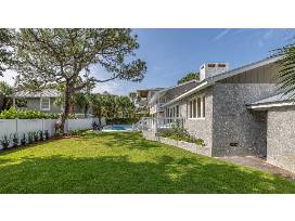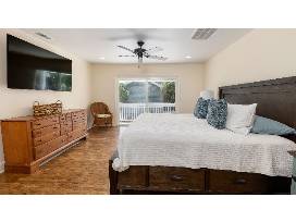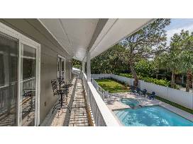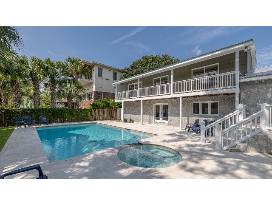 Spend 4 nights in this 4 bedroom, 4 bath home with an oversized yard, a large swimming pool, spacious indoor living spaces, and is only one home away from beach access. The home sleeps 8 and is the perfect place for the whole family to relax and play! The oversized privately fenced back yard offers plenty of space for entertaining, lounging, and play area for the kids.