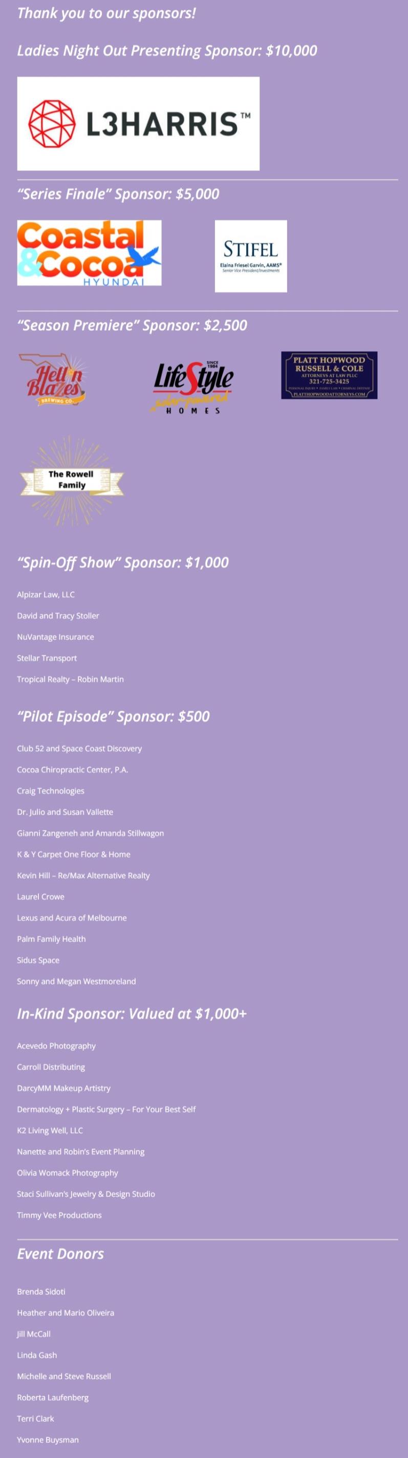 Candlelighters of Brevard invites you to join us for Ladies Night Out 2022: TV Sitcoms...Laughter through the Decades. This fun celebration will be held on Friday, March 25 at the Hilton Rialto Melbourne from 6:30PM - 11PM. We are preparing for a sold-out event featuring a memorable night of dancing, dinner, complimentary beverages, costume contest and spectacular auctions.