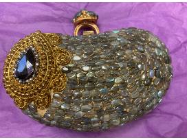 A $250 gift certificate from York Vison (Kenwood) to be used towards a pair of eyeglasses (frames and/or lenses). Paired with a "Mary Francis" evening bag from Grace Jones, Dwellings on Madison. The handle looks like you are wearing a gorgeous ring while carrying your clutch. This bag is made with Labradorite stones and crystals.