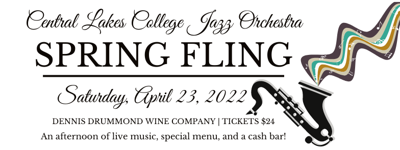 Come Support The Central Lakes College Music Department at Dennis Drummond Wine Company from 11:30 a.m. - 3:00 p.m. on Saturday, April 23, 2022. Your ticket includes one of three specialty meal choices (one vegan, gluten free*). Please note it is a cash bar for sangria, wine and tap brews. We hope to see you there!