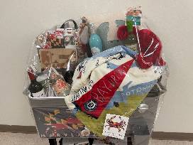 Includes cooler on wheels, $100 Chart House Gift Card, beer, drinks, bottle mixers, 3 bottles of wine, 1 bottle of gin, 2 bottles of vodka, whiskey and tequila, Maryland sign, Spartina Maryland towel, 3 koozies, crab pillow, stuffed animal crab, key chain, wine stopper,