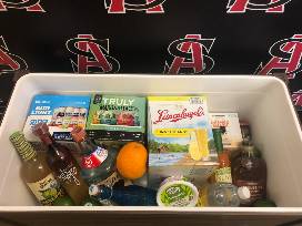 Permasteel 80quart Brown Patio Cooler, Titos Vodka, Milagro Tequila, Redemption Bourbon Whiskey, Leinenkuegels Summer Shandy 12 pk, Truly's Margarita 12 pack, Bud Seltzer 12 pack, Toppers Coconut Rum, Orange Smash 4 pack, Margarita Mix, Salt, Tonic, Martini Mix and Citrus