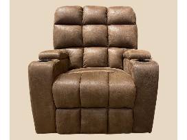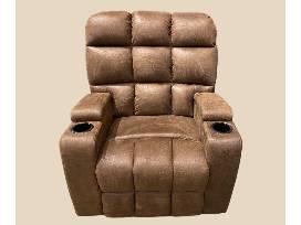 Beautiful electric recliner with two cupholders and storage under armrest made of aged leather look micro fabric.