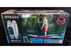 Inflatable paddle board, paddle, pump, fin, and carrying case