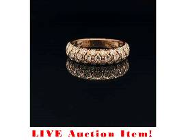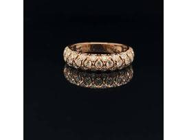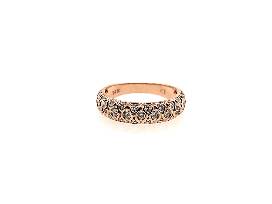 Beautifully made 14 k rose gold stackable band featuring thirty on round brilliant cut diamonds that equal 0.65 carats with fantastic color and clarity. This is a great stand alone ring or can be work beside another ring as well.
