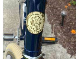 You are bidding on a limited-edition St. Germain Bicycle and Cocktail Kit, patterned after the bikes used by farmers in the French Alps. This bike is decorated in a detailed St. Germain colorway, right down to the logo, golden chain and deep blue frame. An actual leather saddle, wicker basket, classic bell and unique cork grips, create a French countryside feel. Many people who are lucky enough to own one of these bikes hang them up on their walls. Solange Knowles and various other celebrities own one of these bikes.
