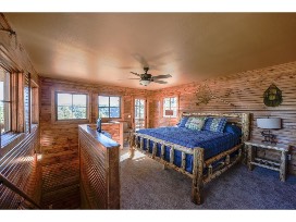 The master bedroom is at the top of the tower on the 4th level and includes a king-size bed, flat screen TV, full bathroom and walk-out patio with endless views! On the 3rd level, there's another spacious bedroom with full-size bunk beds and small area with a TV. Main Level bedroom includes a queen bed and full bathroom. The lowest level has a 4th bedroom with twin size bunk bed and 5th bedroom that includes a queen size bed.