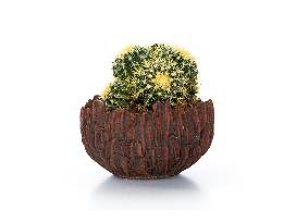 Wood Tree Trunk Pot with an Echinocactus grusonii Multi. (8 inches Tall; 12 Inch in Diameter)