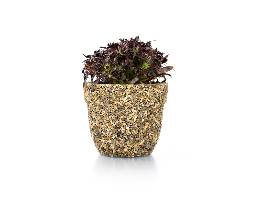 Aeonium 'Firecracker' in a medium Pebbled Pot. (8 inches Tall; 8.5 Inch in Diameterr)