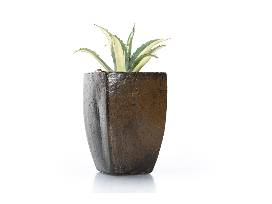 Medium Square metal brown black with an Agave americana 'Mediopicta alba'.