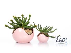 Pink glazed small with a Euphorbia inermis & Pink glazed medium with a Euphorbia squarosa.