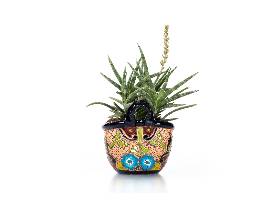 Talavera Shopping Bag pot with Sansevieria trifasciata.