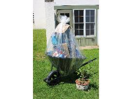 Enjoy a refreshing mint julep on the porch after a day of tending to your garden and sweet little lemon tree. Lights strung on your porch with festive new tableware for eight people. With gardening tools, games, beverages, and fun décor we have you covered to set the tone for a fabulous Garden Party! Included in this 6 cubic ft wheelbarrow is: